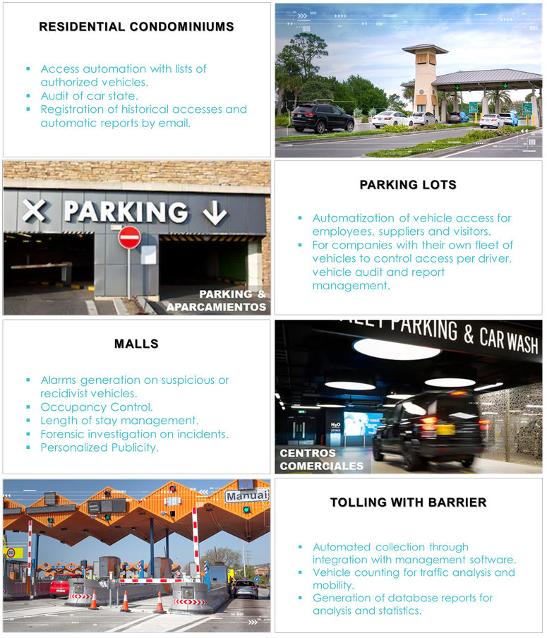 يدير الوصول إلى المركبات المصرح بها والمقيدة ، والتعرف على لوحات الترخيص باستخدام مشغل (حلقة حثي ، خلية ضوئية ، وما إلى ذلك) ، ويعمل بشكل مستمر على حواجز الوصول وفقًا لقوائم الدخول ، وأتمتة الوصول ، وإذا لزم الأمر ، تحسين العمليات التي تتكامل مع العديد من مقاطع الفيديو أنظمة التسجيل. وبهذه الطريقة فإنه يوفر للشركات أو المنازل ، تداولًا آمنًا وآليًا