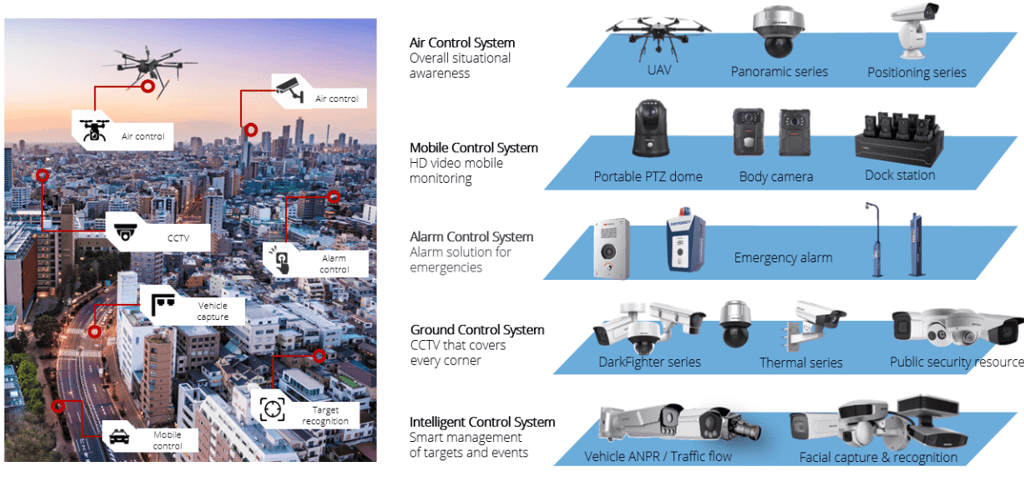 The graphic below shows a full range of control systems provided by Hikvision for these phases.