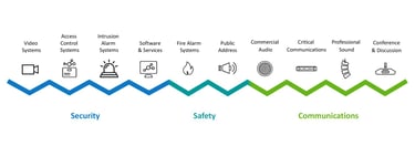 The product portfolio includes video surveillance, intrusion detection, fire detection and voice evacuation systems as well as access control and management systems. Professional audio and conference systems for communication of voice, sound and music complete the range.