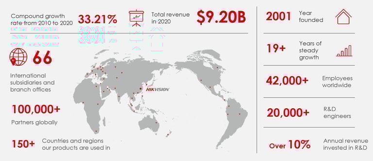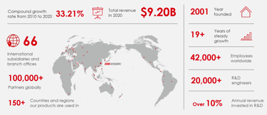Hikvision now has more than 42,000 employees, over 20,000 of which are R&D engineers. The company annually invests over 10% of its annual sales revenue to research and development for continued product innovation. Hikvision has established a complete, multi-level R&D system that includes every operation from research to design, development, testing, technical support, and service. Centered at its Hangzhou headquarters, the R&D teams operate globally, including R&D centers in UK, Canada and Asia-Pacific region, as well as eight cities in China.