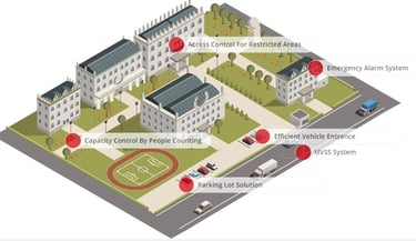 Ensures on-campus safety with three layers of protection covering school gates, campus roads and building entrances.